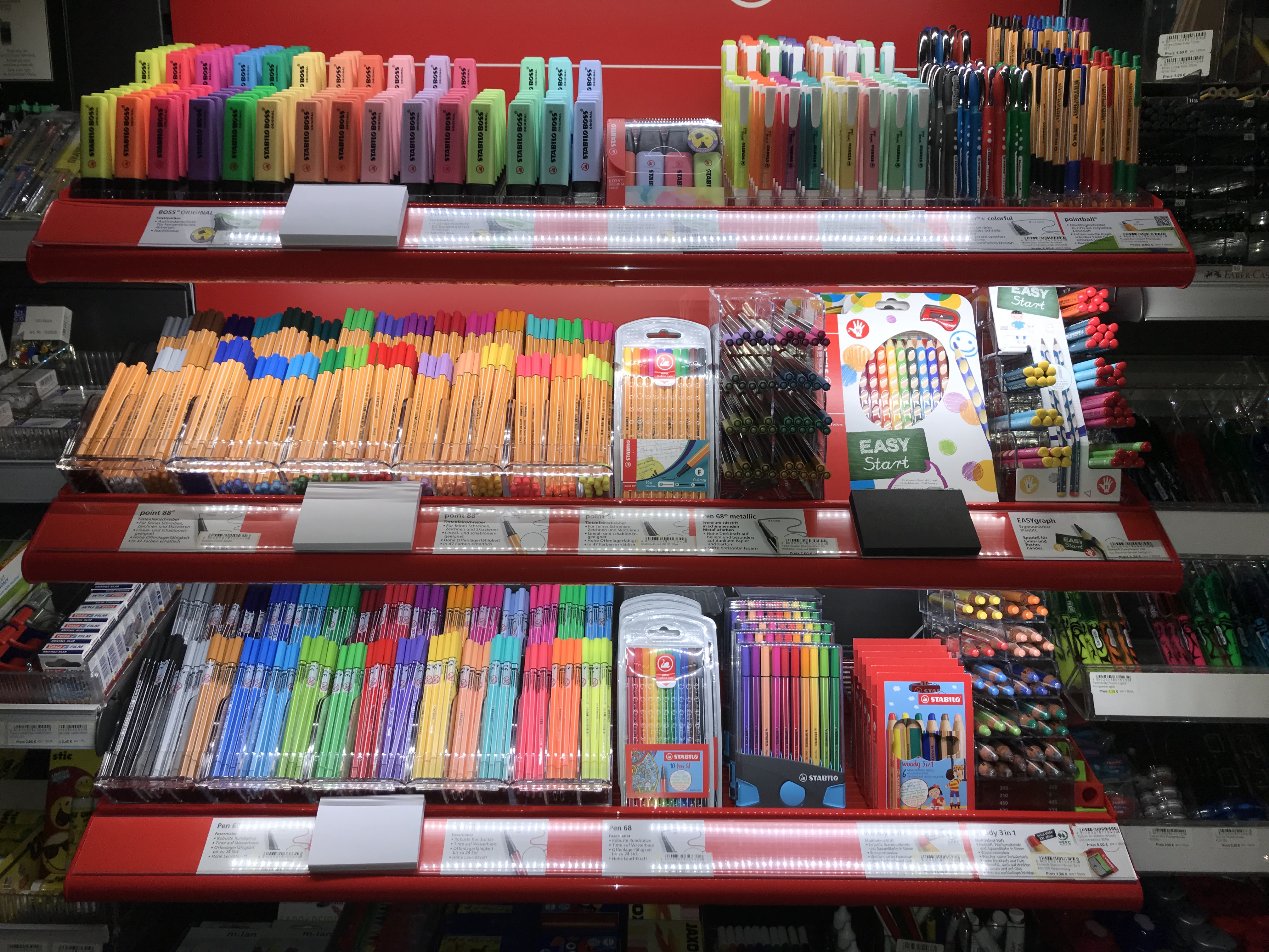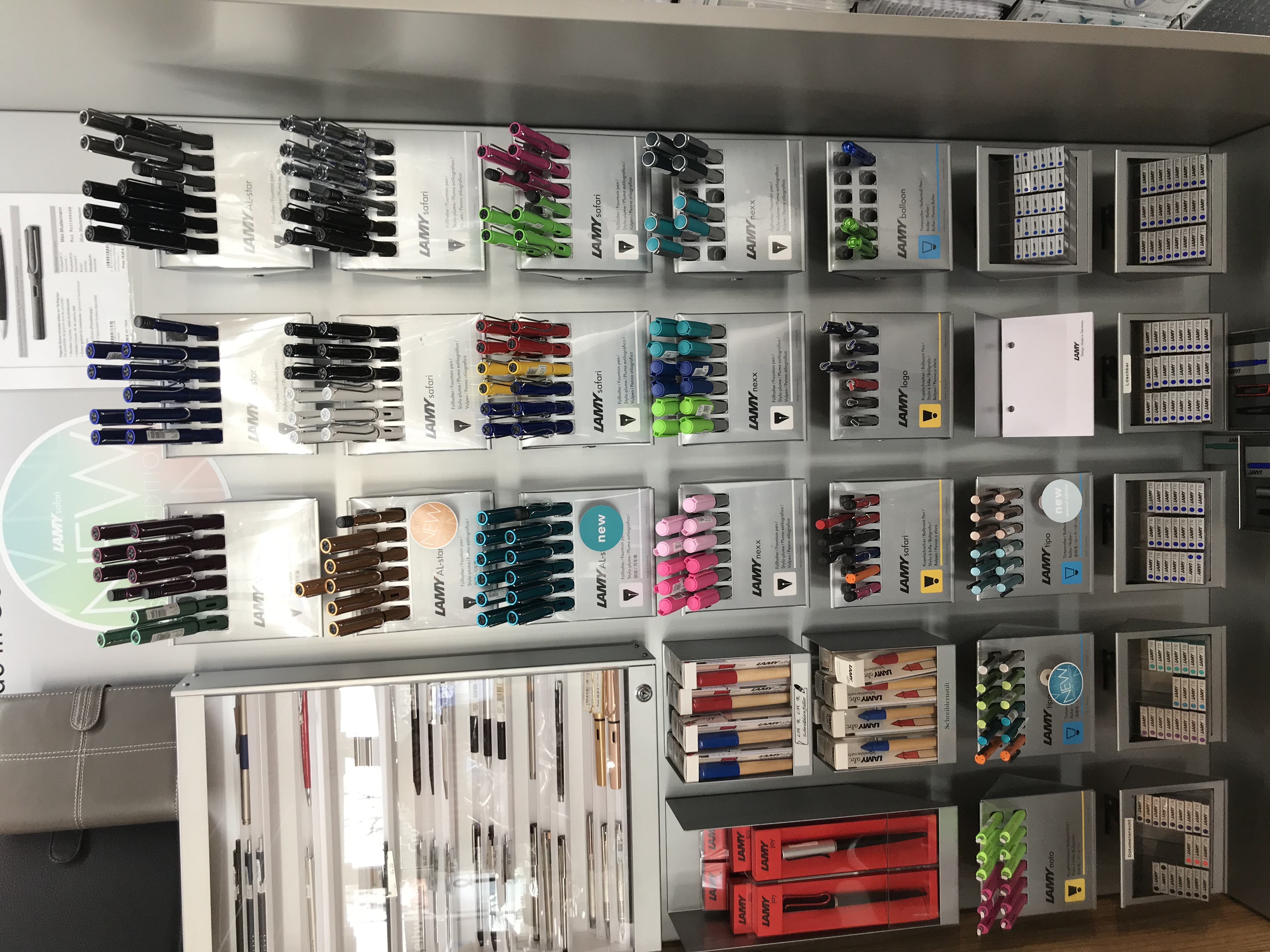 Bei uns finden Sie Füller, Kugelschreiber, Bleistifte, Tintenroller und viele weitere Utensilien, die Sie in Ihrem Federmäppchen und auf Ihrem Schreibtisch brauchen. Schreibgeräte können alle vor Ort selbstverständlich ausprobiert werden.